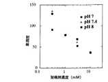 pHの影響は、架橋剤が低濃度(0.3mM)の際には認められるが、それ以外の条件では認められない。ゲル形成反応は、4℃では30分程度かかるのに対し、25℃、37℃では、5分以内に終了する。したがって、ゲル形成反応温度は25〜37℃が好ましい。