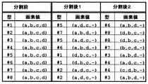 また、本発明の画像処理装置の復号化側は、動画を構成する連続した個々のフレーム対応の画像データが1つ以上の正方形領域に分割され、そのそれぞれの正方形領域が再帰的三角形領域分割処理されたのち、その分割された三角形領域が符号化され、かつ、当該処理対象となるフレーム対応の画像データがフレーム間相関を用いて符号化されてなり、この符号化データを復号化する画像処理装置であって、その構成要素として、符号化データを入力する符号化データ入力手段と、この符号化データ入力手段に入力された符号化データを解析する符号化データ解析手段と、この符号化データ解析手段による解析結果に基づいて、前フレーム符号化データを選択するか現フレーム符号化データを選択するかを判定する符号化データ選択判定手段と、この符号化データ選択判定手段の判定結果に基づいて、再帰的に三角形領域を合成する再帰的三角形領域合成手段と、合成された三角形領域により正方形領域を合成する正方形領域合成手段と、合成された正方形領域から画像データを復元して出力する画像データ出力手段とを含むことを特徴としている。