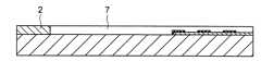 固定電極10及び絶縁層11を形成後、MOCVD法により窒化シリコン膜を成膜してリソグラフィ法及びRIEによりパターニングを行って、図3bに示すように、固定部2を形成する。さらに、スパッタ法によりアモルファスシリコンからなる犠牲層7を形成して、CMP(化学的機械的研磨法)により固定部2の表面が露出するまで表面研磨及び平坦化を行う。  After the fixed