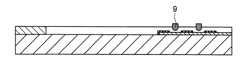 固定部2及び犠牲層7を形成後、リフトオフ用のレジストパターンを利用してRIEにより犠牲層7のライトエッチングを行い、犠牲層7に深さ400nmのトレンチを形成した後、スパッタ法により金(Au)を堆積させてリフトオフ法によりパターニングを行い、図3cに示すように、接点電極9を形成する。  After the fixing