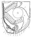 空気調和機では、室内ユニットに対して図示しない室外ユニットが室外に設置されている。室外ユニットには、圧縮機、熱交換器、四方弁、室外ファン等が内装され、これらと室内側の熱交換器1とによって冷凍サイクル40が形成される。そして、図7に示すように、冷凍サイクル40を制御する制御装置41が室内ユニットに設けられる。マイコンからなる制御装置41は、ユーザの指示および室温や外気温を検出する温度センサ等の各種のセンサ42の検出信号に基づいて、冷凍サイクル40を制御し、冷暖房運転を行う。このとき、制御装置41は、冷暖房運転に応じて開閉機構を制御し、導風パネル20を開閉する。また、制御装置41は、定期的に、あるいはユーザからの指示により、清掃装置8を制御して、フィルタ7を清掃する。  In the air conditioner, an outdoor unit (not shown) is installed outside the indoor unit. The outdoor unit includes a compressor, a heat exchanger, a four-way valve, an outdoor fan, and the like, and a