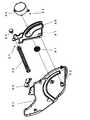 ロッド32の後端が、移動板81の前端近傍に回動軸84を介して回動自在に取り付けられる。移動板81には、円弧溝85が形成される。円弧溝85は、固定軸83を中心とする円弧上に形成される。円弧溝85に、ラックが形成される。駆動部58は、開閉モータ86と、モータ軸に取り付けられたギア87とからなる。このギア87が円弧溝85内に挿入され、ラックと噛み合う。  The rear end of the