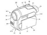 デジタルビデオカメラ20は、外観形態を構成する筐体からなるケース本体の一具体例を示す外装ケース21と、この外装ケース21の内部に収納されると共に着脱自在に装着されるテープカセットの磁気テープを走行駆動して情報信号の記録(書き込み)及び再生(読み出し)を行うテープドライブ装置と、このテープドライブ装置の駆動制御等を行う制御回路と、被写体の像を光として取り込んで撮像素子に導くレンズ装置22と、外装ケース21に回動自在に取り付けられた表示装置23等を備えて構成されている。  The