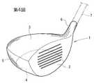[1]  ドライバーやフェアウェーウッドなどのウッド型ゴルフクラブヘッドとして、中空の金属製のものが広く用いられている。一般に、図4に示されるように、中空のウッド型のゴルフクラブヘッド1は、ボールをヒットするためのフェース部2と、ゴルフクラブヘッドの上面部を構成するクラウン部3と、ゴルフクラブヘッドの底面部を構成するソール部4と、ゴルフクラブヘッドのトウ側、バック側及びヒール側の側面部を構成するサイド部5と、ホゼル部6とを有している。このゴルフクラブヘッド1のホゼル部6にシャフト7が挿入され、接着剤等によって固定される。なお、最近では、ユーティリティクラブと称されるゴルフクラブヘッドも多く市販されており、このユーティリティゴルフクラブヘッドの1種として、上記ウッド型ゴルフクラブヘッドに類似した(即ち、フェース部、ソール部、サイド部及びクラウン部並びにホゼル部を有した)ゴルフクラブヘッドも各種市販されている。[1] Hollow metal golf club heads such as drivers and fairway woods are widely used. In general, as shown in FIG. 4, a hollow wood-type golf club head 1 includes a