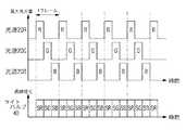 図4に示すタイミングチャートにおいて、各波形は、光源20R、20G、20Bの発光タイミングに加え、その高さにより各色光の発光量を概念的に示すものである。また液晶ライトバルブ40のタイミングチャートは、図2と同様に、画像信号の出力タイミングのみを示している。