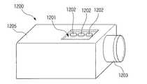 そこで最近、新しい光源としてLEDが注目されている。LEDは超小型・超軽量、長寿命である。プロジェクタの光源としても有望であり、既に小型・携帯用小画面プロジェクタへの応用開発が始まっている(特許文献1参照)。現在のところ、LEDの効率はまだUHPの1/2〜1/3程度であるが、めざましい技術革新により年々着実に向上しつつある。