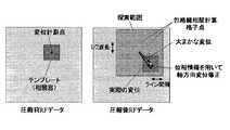 そこで、機械的振動を与えて組織の弾性特性を評価するものに対して、前述の第2の従来技術のように、組織を静的に圧縮してその際生じる組織内の歪み分布から弾性特性を評価する方式が提案されている。これは、硬い組織では歪みが小さく、軟らかい組織では歪みが大きくなることに基づいている。