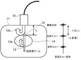 となる。ここで、cは生体内での音速であり、軟組織では1500[m/秒]にほぼ一定とみなせる。よって、超音波エコー信号を受信するまでの時間tを計測すればプローブから反射物体までの距離Lを求めることができる。