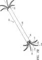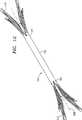 このカラー512の動きによって、支持アーム520の第1の端部520aが、外側に向けて軸方向に移動する。(すなわち、近位端504上の支持アーム520に対して近位になるように。)従って、スプライン510が筒状シャフト502の近位端及び遠位端504、506の両方にあれば、近位及び遠位の支持アーム520の第1の端部520aが互いに離れる方向に移動する。支持アーム520の第2の端部520cは、スプライン510に連結されているので、支持アーム520の中間領域520bを止め付けて、スプライン510を、図12に示すように、スプラインが縦軸508に対してほぼ横方向に方向付けられて、拡開状態を規定するまで、スプライン510を外側に向けて半径方向に誘導される。  By the movement of the