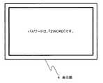プラグインソフトウェアPには、パスワード変更時刻(ここでは、毎時00分、15分、30分、および45分とする。)、およびその変更時刻のリードタイム(ここでは、5分間とする。)が予め設定されている。アクセスポイント1の制御部3は、これらの時刻情報のリードタイム(例えば、変更時刻を11時00分とすれば、10時55分)に同期して、新しいパスワード「2WORD」を表示部4a又は4bに表示する(ステップs44)。図5は、表示部4a又は4bに表示されたパスワード表示の例である。  The plug-in software P has a password change time (here, 00 minutes, 15 minutes, 30 minutes, and 45 minutes) and a lead time of the change time (here, 5 minutes). It is set in advance. The control unit 3 of the