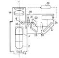 まず、図12を用いて本実施形態の構成を説明する。投影プリズム32と結像レンズ31は、  図中破線で示すD方向(光軸方向)に移動可能に支持されている。38は投影プリズム32および結像レンズ31の移動量を検出するセンサであり、センサ31の信号はビデオミキサ39に入力される。ビデオミキサ39は画像の表示範囲や表示倍率を変更できる機能を有しており、内視鏡画像および図示しない神経モニタからの波形情報が入力される。ビデオミキサ39からの映像出力信号はモニタ26に送信される。モニタ26に送信される映像は、内視鏡像または神経モニタ波形であり、これらは選択可能となっている。