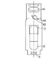 接眼鏡筒4には、  ズーム鏡体3側から順に、結像レンズ46と、ミラー47と、イメージローテータ48と、偏向プリズム49と、プリズム50と、接眼レンズ52とが配置されている。プリズム50の反射面55にはミラーコートが施されている。また、プリズム50は、図22に矢印で示されるH方向に移動可能に支持されている。また、接眼レンズ52の光軸の延長線上には、投影レンズ54と液晶モニタ53とが配置されている。この場合、投影レンズ54は液晶モニタ53の画像を結像面51に結像するべく配置されている。