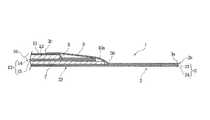 図1ないし図3に示す実施の形態では、ベースシート2の表面21に薄い吸収層7が重ねられている。この吸収層7は、保持空間5,5の奥行き終縁5bと奥行き終縁5bとの間に配置され、ベースシート2の表面21と吸収層7とはホットメルト型の接着剤などで接着されている。