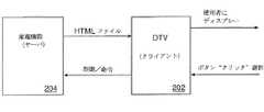 前述したように、各家電機器は1つ以上のハイパーテキストマークアップランゲージ(HTML)ファイルと関連されている。HTMLファイルは特定の家電機器と関連した制御及び命令機能を定義する。各HTMLファイルは他のHTMLファイルに対する内蔵された参照事項をさらに含む。ブラウザー基盤のDTV(クライアントとして動作) 102は家電機器( サーバとして動作) と関連したHTMLファイルを受信及び解読し、可視的なディスプレー上にそれぞれの制御及び命令情報を図式的に示す。