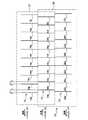 図5は、印刷ヘッド12におけるインクジェットノズルNzの配列を示す説明図である。図示するように180個のノズルNzを副走査方向に列状に配置して形成されたノズル列R1、R2、R3、R4、R5、R6、R7、R8が、主走査方向に8列並べて形成されている。8列のノズル列R1、R2、R3、R4、R5、R6、R7、R8のうちの隣り合う一対のノズル列(例えばR1とR2)に属するノズルNz同士は、副走査方向に所定ピッチずつ互いにずれており、また、1列置きの一対のノズル列(例えばR1とR3)に属するノズルNz同士は副走査方向において互いに同一位置に配置されている。