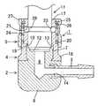 ダイアライザー等の透析器の接続プラグに、透析液循環用ホース等の液体移送ラインを接続する透析器接続用カプラとしては、例えば、図3に示すものがある。このものでは、本体31内部に、接続プラグが嵌脱自在に嵌入される嵌合部32と、接続プラグ内部と連通する空洞部33が形成されると共に、本体31に筒状のホース接続部34が側方突出状に一体形成されて、その内部が空洞部33と連通している。又、本体31内には、接続プラグと嵌合部32を液密状態で接続するためのOリング35が備えられると共に、本体31には、接続プラグを本体31に解除可能に固定する固定機構36が備えられている。