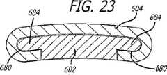 例として、図21〜23は、舌部・溝構成内で結合された椎体係合固定具602および接続平板604の別の好ましい実施形態を示す。例として、接続平板604は、接続平板604の縦軸を横切る横断面を持つ部分、すなわちC字形成溝680を有することができる。接続平板604は各側部に沿って少なくとも1つのタブ682を有する。好ましくは、複数のタブ682が接続平板604の側部に沿って離間している。椎体係合固定具602は、椎体係合固定具602の縦軸を横切る横断面を持つ部分、すなわちT字形成側部684を有することができる。椎体係合固定具602は、接続平板604のC字形横断面に係合して、側部684がC字形成溝680にそれぞれ係合するように構成される。椎体係合固定具602の側部684は、接続平板604の少なくとも1つのタブ682が通過できるように構成されたノッチ686を含む。使用時には、接続平板604が椎体係合固定具602上に配置されて、タブ682が対応するノッチ686に整合して側部684を溝680に摺動可能に係合させ、椎体係合固定具602と接続平板604とを結合する。椎体係合固定具の少なくとも1つが、接続平板の溝で受けるように構成された横断面を持つ舌部として構成された部分を有するように、椎体係合固定具および接続平板を構成してもよいことが理解できよう。 By way of example, FIGS. 21-23 illustrate another preferred embodiment of a vertebral