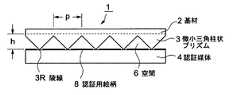 認証媒体4が薄い透明基材である場合、認証用絵柄8はいずれの面であっても良いが、プリズム高さh以上に厚みのある基材の場合は、プリズム面側である方が好ましい。