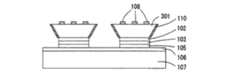 図5は、実施例3の発光素子300の構造を示す図である。実施例1の発光素子100との構造の違いは、半導体層301の上面のn電極108が形成されている領域以外には、高抵抗領域311が形成されている点である。この高抵抗領域311によって、半導体層301の上面での電流のリークやショートが防止される。 FIG. 5 is a diagram illustrating the structure of the light-emitting