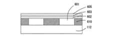 図10は、実施例6の発光素子600の構造を示す図である。p電極602、低融点金属拡散防止層603、低融点金属層605がパターニングされずに、支持基板107上面の全面にわたって形成されている点で、実施例5の発光素子500と構造が異なる。実施例5の発光素子500の製造工程とは、図9Cが異なる以外は同一の工程により発光素子600は製造される。実施例6の製造工程は、図11のように、p電極602、低融点金属拡散防止層603、低融点金属層605をパターニングせず、半導体層601および高抵抗領域610の表面の全面にわたってp電極602、低融点金属拡散防止層603、低融点金属層605を形成している(図11)。その後、高抵抗領域610を実施例5のようにテーパー状にドライエッチングして凹部520を形成し、n電極108を格子状のパターンに形成し、p電極602、低融点金属拡散防止層603、低融点金属層605とともに支持基板107を切断することで、図10に示す発光素子600が製造される。 FIG. 10 is a diagram showing the structure of the light-emitting