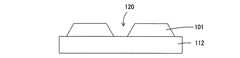 次に、所定の領域をサファイア基板112が露出するまでドライエッチングして、半導体層101を各素子ごとに分離する。このとき、各半導体層101は、p層側からサファイア基板112に向かうにつれて断面積が漸増するようなテーパー状になるようドライエッチングし、凹部120が形成される(図2B)。 Next, dry etching is performed on a predetermined region until the
