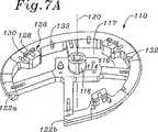 図7A〜図7Cは、本発明の環40の移植における使用のための例示的テンプレート110の複数の斜視図である。テンプレート110は、複数のスポーク116を介して中央プラットフォーム114に結合された周囲の取り付け環112を備える。テンプレート110は、種々の材料から構成され得、生体適合性プラスチックが好ましい。ウインドウ117は、移植部位のより良好な視界のためにスポーク116の間に存在する。ハンドル受容ハブ118は、プラットフォーム114から上方向に突出し、そしてテンプレート110の中心軸120をほぼ規定する。取り付け環112は、軸120の周りに約四分の三、延び、そして2つの軸方向に間隔の空いた端部122a、122bにおいて終結する。  7A-7C are multiple perspective views of an