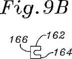 図8Bおよび図9A〜図9Cに関して、少なくとも前方側部156cのほとんどに沿った、構造支持体150の断面形状が、自由端154a、154bでの湾曲においてより可撓性を有するように設計される。図9Aは、後方側部156cを通る断面であり、そしてこれは、上部ウェブ162と下部ウェブ164との間(両方が内側基部166から延びる)に形成される外側に面する溝160を有するほぼC型の断面を示す。上部ウェブ162は、下部ウェブ164より半径方向にわずかに遠く延びる。  8B and 9A-9C, the cross-sectional shape of the