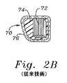 対照的に、図2Bは、外側のファブリックカバー76を有する縫合透過性のコア材料74(例えば、シリコーン)により囲まれた相対的に剛性な材料(例えば、Elgiloy)の複数バンドの内部骨格72を有する従来技術の環70の断面を示す。そのような従来技術のデバイスにおいて、バンド60は、軸44に沿ってかまたはそれに平行に方向付けられ、従って、中心軸の周りでの湾曲においてより可撓性である。  In contrast, FIG. 2B shows a multi-band