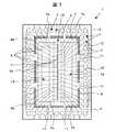 (e)封止体の形成時、封止体を形成する樹脂が流れても、その流れは樹脂の表面張力もあることから、スリットの内側の縁またはスリットの外側の縁で停止されることから、形状の整った封止体を形成することができ、外観性も良好になる。(E) during the formation of the sealing body, even flow resin forming the sealing body, the flow since it is also the surfacetension of the resin, it is stopped at the outer edge of the inner edge or slit of the slit Therefore, a sealed body with a well-shaped shape can be formed, and the appearance can be improved.