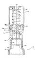 図9に最も良く示されるように、上部キャップ124と同様に、底部キャップ193は第2カム面197を含む。第1カム面185及び第2カム面197は、底部キャップ193が上部キャップ124に対して回転する際に互いに当接するので、この回転中に該底部キャップ193は、同時に該上部キャップ124から遠ざかるように軸方向に移動する。示される実施形態においては、第1カム面185は、上部キャップ124の内面から延びている複数の内側に面するリッジであり、第2カム面197は、角度が付けられた複数のノッチである。作動中、底部キャップ193が上部キャップ124と相互係合された時にリッジがノッチに当接するので、該底部キャップ193が該上部キャップ124に対して回転する際に、該リッジは、角度が付けられたノッチに沿って載っており、同時に該底部キャップ193を該上部キャップ124から遠ざかるように軸方向に移動させる。  As best shown in FIG. 9, like the
