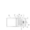 18は他片9とPTPシート2間に介装される規制片で、図3の如く他片9の一端部に折り目19及び連結片20を介して連設されてなり、規制片18と連結片20間には両者が離脱可能なように数箇所を除いて切目21が形成されている。22は切目21の側方に設けた凹凸部で、エンボス加工により幅方向に形成している。23は凹凸部22の側方に設けた複数の孔で、前記収納孔4及び取り出し孔11と略同形状に形成されており、規制片18を折り目19から他片9側に折り込んだ際には、孔23は収納孔4及び取り出し孔11とは一致しないように、即ち該取り出し孔11が閉鎖されるように設定してなり、且つ規制片18の一端部24及び下端部25の側方位置に他片9のシール部15が夫々配置されると共に、一片1及び他片9の切欠13,14から規制片18の上端部が表出しないように設定している。尚、他片9の上端部にはシール部15を設けていないため、図2の如く使用に際して規制片18を連結片20から離脱させた場合、該規制片18は他片9とPTPシート2間を上下方向にスライドさせることができる。