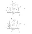 図4は、本発明の第二の実施形態の構成を示す等価回路図である。図中、図2と同じ番号は、同じ構成要素を示している。本実施形態では、固定抵抗44と第二の可変デバイス42の位置が第一の実施形態と入れ替わっている。また、第二の可変デバイス42の順方向の向きも第一の実施形態と反対である。本実施形態のスイッチの動作を図5(a)および(b)を用いて説明する。同図において図4と同じ番号は同様の構成要素を示すものである。  FIG. 4 is an equivalent circuit diagram showing the configuration of the second embodiment of the present invention. In the figure, the same numbers as those in FIG. 2 indicate the same components. In the present embodiment, the positions of the fixed