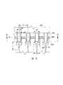 「細長化領域」は、平面図(図3〜6)の複数個の押出成形ノズルの全体の形状により形成される領域により輪郭を描かれ、製造される繊維の全般的移動方向においてはノズルチップからの細長化距離Z(図2及び図9)まで伸びる三次元空間である。「細長化距離」は、押出成形ノズルチップから始まり、製造される繊維の全般的移動方向に伸びる距離であり、またこの距離内で、製造される非熱可塑性初期繊維は細長化して、約20ミクロン未満の個々の平均等価直径を有する、結果の非熱可塑性繊維を成形することができる。 The “elongated region” is delineated by the region formed by the overall shape of the plurality of extrusion nozzles in the plan view (FIGS. 3-6), and the nozzle tip in the general direction of movement of the manufactured fiber This is a three-dimensional space extending to the elongate distance Z (FIGS. 2 and 9). “Elongation distance” is the distance starting from the extrusion nozzle tip and extending in the general direction of travel of the produced fiber, and within this distance, the produced non-thermoplastic initial fiber is elongated to about 20 The resulting non-thermoplastic fibers can be formed having individual average equivalent diameters less than a micron.