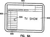 図6(a)から図6(b)において、本発明の更に他の実施例による、グラフィカルユーザインタフェース内で表示可能なコンピュータプログラムの制御表示の操作を示す概念図が示される。先ず図6(a)を参照すると、電子プログラムガイド(EPG)アプリケーションプログラム604が動作しているグラフィカルユーザインタフェース600がテレビジョンソース602の上に重ね合わせられる(即ち、オーバーレイされる)。このようなEPGアプリケーションプログラムは当該技術分野内で公知である。ユーザ制御可能ポインタ606は完全に不透明なEPGエントリ(本特許出願の目的からみて制御表示の定義にはこれが含まれている)608上に位置されて示される。次に図6(b)を参照すると、ポインタ606がテレビジョンソース602上に位置されたときに、EPGエントリが更に表示され、図6(a)の完全に不透明な制御表示に加えて半透明な制御表示もまた表示される。これらの制御表示は半透明であり、テレビジョンソース602はユーザにとって可視のままである。更に、構成要素610で表されるように、テレビジョンソース602上に表示される格子領域は半透明であるが、ポインタが位置する格子の部分における特定の情報セルは不透明である。