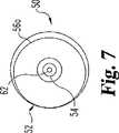 ここで図4−7を参照して、結合部材50を説明する。結合部材50はプラグ本体52から末端方向へ伸びる侵入要素54の形をした細長部材係合部分を備えたプラグ本体52を有する。プラグ本体52のまわりにネジ形状56が形成される。ネジ形状56は支持表面60上にネジ終了部56aを有する。プラグ本体52は更にその中に形成された工具受け入れ部58を有し、結合部材50をアンカー30のネジ形状35a、35bに係合させるために回転駆動力を結合部材50に適用するように、駆動工具が工具受け入れ部に受け入れられる。結合部材50はアンカー30と結合部材50との間に位置する細長部材80に当接する下方の支持表面60を有する。侵入要素54は細長部材80内への侵入要素54の侵入を容易にするように先細りした末端部62を有する。  Here, the