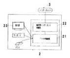 端末装置2について図3に基づいて説明する。端末装置2は複数台で構成される。21はブラウザ格納部で、ハードディスク等の記憶媒体により、WWWブラウザを格納する。22は端末側インターネット接続部で、電話回線でもってインターネット3に接続するインタフェイスが設けられる。表示部23は、CRTにより、インターネット3を介して送信されたページデータ13cをWWWブラウザに基づいて表示する。