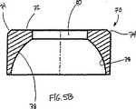 次に、図5a及び図5bを参照すると、本発明のクラウン部材70の1つの実施の形態が図示されている。この実施の形態において、クラウン部材70は、斜角付き端縁74を有する上面72と、下面78とを備える円形ディスクの形状をしている。下面78は、骨アンカー50の頭部54を受け入れる形態とされ、このため、図示した下面78の実施の形態は部分球状の形状をしている。これと代替的に又は追加的にクラウン部材70の下面は、斜角付き又は円錐形下面78´(図5c)のような1つ以上のその他の形状とすることができる。下面78には、骨アンカー50の頭部54と協働する摩擦力又は係止力増進面の形態(例えば、粗面又はギザギザ付き面)を設けることができる。