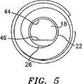 図4および図5を参照すると、以下に記載される駆動装置は、駆動ロッドを、ヘッド14中のデテントへとまたは通しボア18を通じて通過させ、タック10を回転させるように構成される。示されているように、通しボア18は、弧状部分44および平坦部分46を有し、これらは、組み合わされて、概してD形状の通しボアを形成する。これは、通しボア18の内側表面に類似の形状の駆動ロッドが係合し、タック10を回転させることを可能にする。  With reference to FIGS. 4 and 5, the drive described below is configured to cause the drive rod to pass through a detent in the