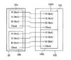このような構成の下、ビデオカード30は、第1リンク32aから、LCD100の右画面102Rに対応するR、GおよびBの各8ビットの画像データとクロック信号を転送し、また、第2リンク32bから、左画面102Lに対応するR、GおよびBの各8ビットの画像データとクロック信号を転送する。