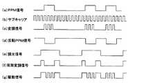 また、反転回路(5)は、反転PPM信号発生回路(10)から出力された図7(a)に示す反転PPM信号を反転し、図7(d)に示すPPM信号を生成し、該生成したPPM信号を出力する。 Further, the inverting circuit (5) inverts the inverted PPM signal shown in FIG. 7 (a) output from the inverted PPM signal generating circuit (10) to generate the PPM signal shown in FIG. 7 (d). Output the PPM signal.