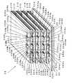図2に示す3次元集積化装置20は、それぞれ1つグランドプレーン21A,21B,21C,21Dを有し、当該グランドプレーン21A,21B,21C,21D上の所望の場所に3つの開口部22A1〜22A3,22B1〜22B3,22C1〜22C3,22D1〜22D3が設けられ、この開口部22A1〜22A3,22B1〜22B3,22C1〜22C3,22D1〜22D3には上記グランドプレーン21A,21B,21C,21Dと対をなして形成されたそれぞれ2本のマイクロストリップライン23A1A,23A1B〜23A3A,23A3B,23B1A,23B1B〜23B3A,23B3B,23C1A,23C1B〜23C3A,23C3B,23D1A,23D1B〜23D3A,23D3Bの各開放端部が位置され、上記各マイクロストリップライン23A1A,〜23A3A,23B1A〜23B3A,23C1A〜23C3A,23D1A〜23D3Aに接続され上記開口部22A1〜22A3,22B1〜22B3,22C1〜22C3,22D1〜22D3の周囲長λに略相当する周波数にて信号の送信を行う各送信部25A1A,〜25A3A,25B1A〜25B3A,25C1A〜25C3A,25D1A〜25D3A及び上記各マイクロストリップライン23A1B,〜23A3B,23B1B〜23B3B,23C1B〜23C3B,23D1B〜23D3Bに接続され上記開口部22A1〜22A3,22B1〜22B3,22C1〜22C3,22D1〜22D3の周囲長λに略相当する周波数にて信号の受信を行う各受信部26A1A,〜26A3A,26B1A〜26B3A,26C1A〜26C3A,26D1A〜26D3Aが設けられた4枚の集積回路基板27A,27B,27C,27Dを積層してなる。上記各集積回路基板27A,27B,27C,27Dの各開口部22A1〜22A3,22B1〜22B3,22C1〜22C3,22D1〜22D3は、各グランドプレーン21A,21B,21C,21Dと垂直な方向において互いに重なる位置に設けられている。The three-