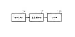 図3は、SHG素子24の温度を調節するためのブロック構成を示す。サーミスタ26は、温度の変化を抵抗値の変化として温度制御部27へ出力する。温度制御部27は、サーミスタ26により計測された温度とSHG素子24の設定温度との温度差からヒータ28へ供給する電力量を計算し、計算された電力量に応じた電力をヒータ28へ供給する。温度制御部27は、サーミスタ26による計測結果に基づいてヒータ28のフィードバック制御を行う。  FIG. 3 shows a block configuration for adjusting the temperature of the
