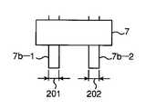 尚、図6には、一部の電極7bの図示を省略した、撮像される電子部品7が示されている。ここで、電極7bの延在方向及び厚み方向に直交する幅寸法であって、電極7b−1の幅寸法を符号201にて、電極7b−2の幅寸法を符号202にて表す。図7には、明るさ変更装置1812を制御する前において、図6に示す電子部品7を撮像したときの撮像情報が示されている。ここで、上記電極7b−1について撮像情報に基づいた上記幅寸法を符号203にて示し、上記電極7b−2について撮像情報に基づいた上記幅寸法を符号204にて示す。図8には、明るさ変更装置1812を制御した後において図6に示す電子部品7を撮像したときの撮像情報が示されている。ここで、上記電極7b−1について撮像情報に基づいた上記幅寸法を符号205にて示し、上記電極7b−2について撮像情報に基づいた上記幅寸法を符号206にて示す。