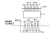 具体的に説明すると、図9に示す各電極7b−3、7b−4、7b−5、7b−6、7b−7について、仮想の直線216が通過している同位置の明るさがすべて実装精度向上領域に存在するように、認識制御部1814は上記明るさ変更装置1812を制御する。ここで、この第2の照度最適化手法の場合、上記実装精度向上領域とは、上記電極7bにおける明るさが基準値を超える領域である。