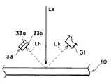 また、ラインセンサ部組33は、図3に示すようにラインセンサ33aと、励起光Leの波長領域の光のみを透過させる帯域フィルタ33bとが一体化されたものであり、励起光Leの照射を受けて蛍光体層1から発生した輝尽発光光は遮断され、蛍光体層1によって反射された反射励起光Lhのみが検出され光電変換されてアナログ反射光信号Ahとして出力される。