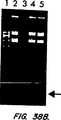 図38A及び38Bは、100mM及び20mMのOGP(2.1の電荷比及び1:1のSM/DODACの比)で調製され、そしてOGPの不在(A)及び存在(B)下でDNアーゼI感度について試験される配合物から単離されるDNAのアガロースゲル電気泳動を示す。パネルA:分子量標準(レーン1)、添加される脂質又はDNアーゼIの不在下でのpCMVβ(レーン2)、DNアーゼと共にインキュベーションした後のpCMVβ(レーン3)、DNアーゼIの不在(レーン4)及び存在(レーン5)下でのインキュベーションに続いて100mMのOGPを用いて調製された、透析された核酸−脂質粒子配合物から単離されたDNA、及び20mMのOGPを用いて調製され、そしてDNアーゼIの不在(レーン6)及び存在(レーン7)下でのインキュベーションに続いて透析された粒子から単離されたDNA。パネルBにおける最初の3つのレーンは、パネルAにおけるレーンと同じであるが、但しpCMVβはDNアーゼIの不在(レーン2)及び存在(レーン3)下で20mMのOGPを用いてインキュベートされた。20mMのOGP下で調製された配合物から単離されたDNA(界面活性剤除去の前)が、20mMのOGPにおいてDNアーゼIの不在(レーン4)及び存在(レーン5)下でインキュベートされた。
