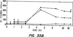 図35A及び35Bは、100mM(A)又は20mM(B)のn−オクチルβ−D−グルコピラノシド(OGP)の存在下で核酸−脂質粒子の調製の間、600nmでの90°光散乱により測定されるサンプル濁り度の変化を示す。
