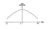 図2は、発光部12の位置、及び発光部12の温度の関係を表すものである。複数の発光部12を備える従来の光源装置は、通常、略一定の間隔で発光部12を並列させる。複数の発光部12を並列させた部分では、中心部から離れるほど容易に放熱可能となる。この場合、図中破線で示すように、中心部Cで最も高温となり両端部EL、ERへ向かうほど低温となるような温度分布が生じることになる。中心部Cに配置された発光部12と両端部EL、ERに配置された発光部12との温度差により、発振波長にも差が生じる場合がある。  FIG. 2 shows the relationship between the position of the