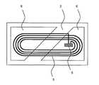 電子回路3の形状は、例えば、図2及び図3に示された形状のものが挙げられる。図2及び図3には、一本の導電性物質の線が長方形状の基材シート1の外周から内側に向けて四重の環状に所定間隔を空けて配置されてアンテナとしての電子回路3を形成している。電子回路3は、図1及び図2のように四重の環状に配置されていてもよいが、一重、二重又は三重の環状であってもよいし、五重以上の環状であってもよい。電子回路3の長さは、受信する電波の波長の長さの倍数になるように調整すればよい。