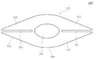 この保持ヘッド102の弾性保持体104は、全体がほぼ菱形形状であり、切り込み111で分離された保持爪112と保持爪113はほぼ三角形である。また、支持体105は、長円形または多角形である。  The